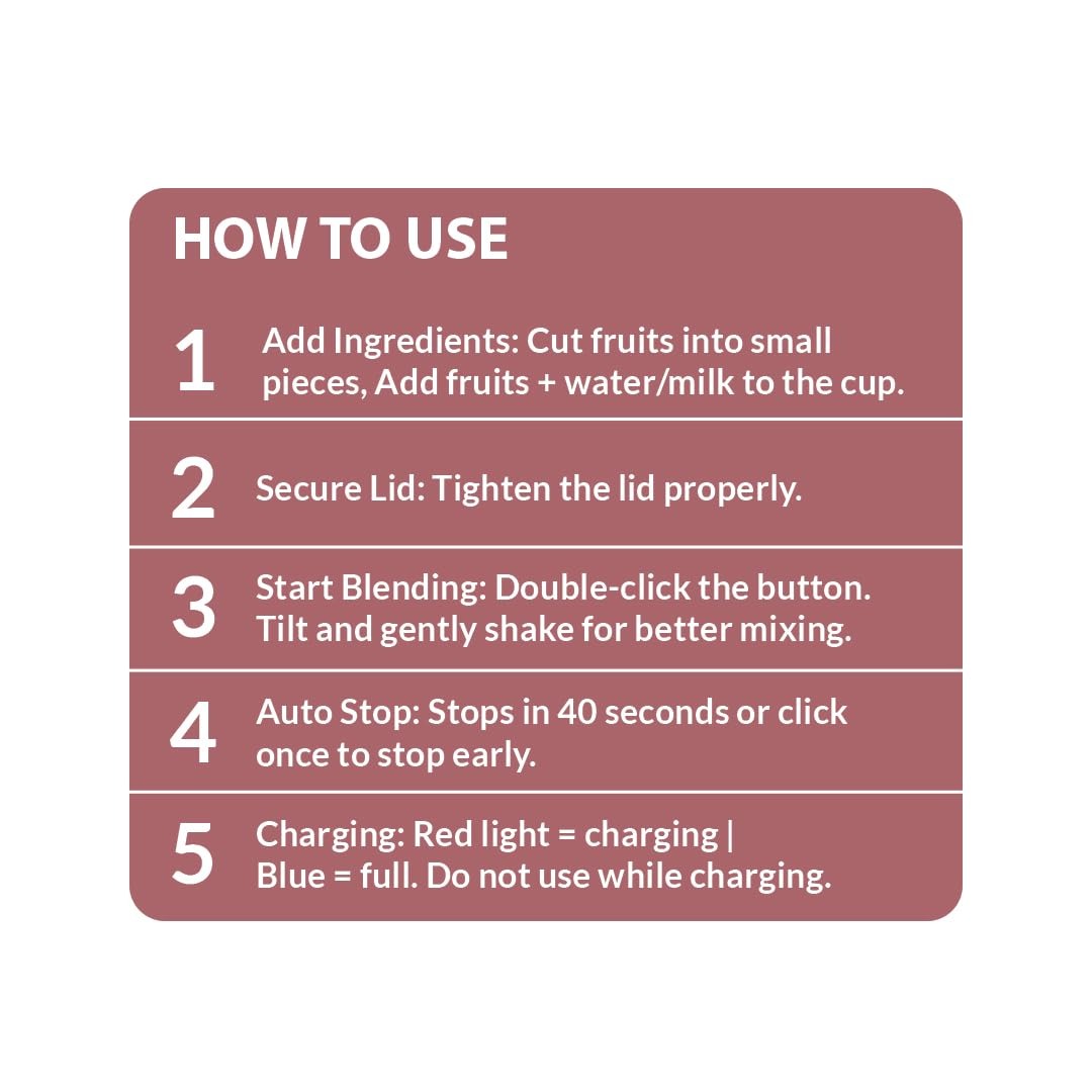 - Portable & USB-C Rechargeable - Lightweight 340 ml bottle with USB-C charging (2–4 h), giving you quick access to fresh blends on-the-go—at gym, work, or while traveling.